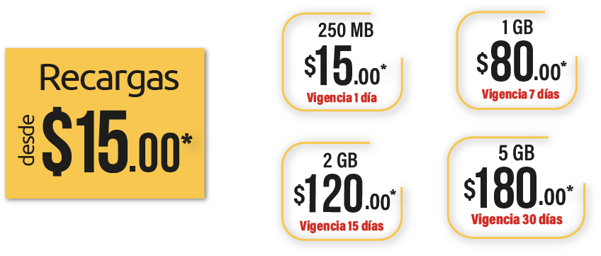 *Todas las tarifas están expresadas en moneda nacional e incluyen impuestos. Las tarifas antes mencionadas se encuentran inscritas en el Registro Público de Concesiones del IFT: Ver PDF